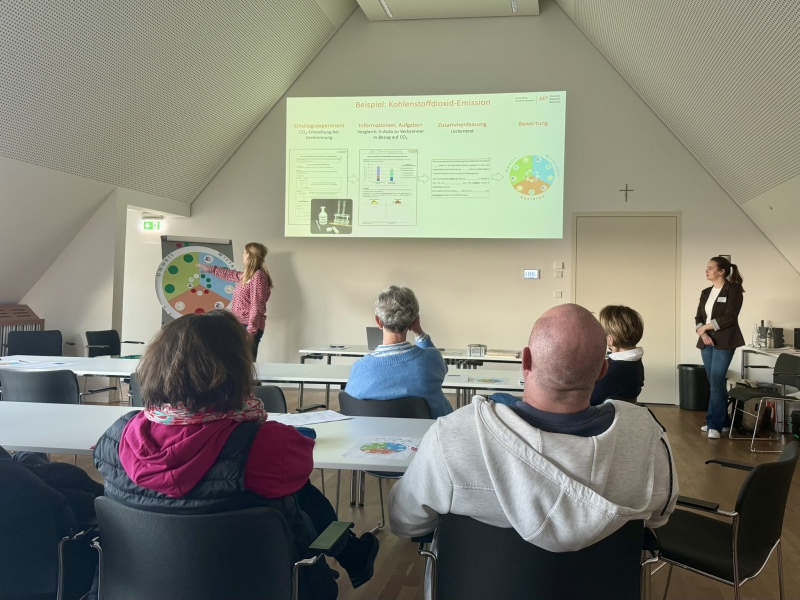 Die Inhalte der Vorträge wurden anschließend in zwei Workshop-Phasen vertieft. Prof. Dr. Klemens Koch arbeitete mit den Teilnehmenden an experimentellen Zugängen zur Energetik im Unterricht. Parallel dazu leitete Prof. Dr. Anette Marohn gemeinsam mit ihrer Doktorandin Anna Klose einen Workshop zur Umsetzung von Nachhaltigkeitsaspekten und critical thinking im Chemieunterricht. Die Verbindung aus aktueller Forschung, konkreten Unterrichtsideen und intensivem Austausch machte die Workshops zu einem besonders gewinnbringenden Bestandteil der Tagung.